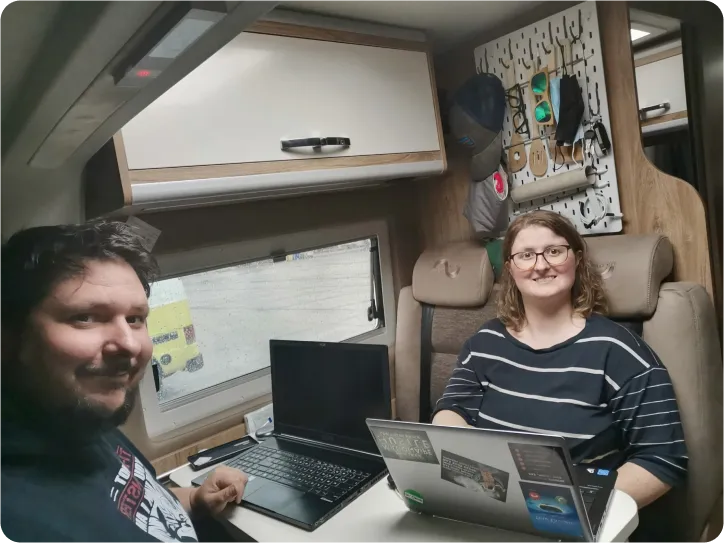 Wir sind Tim und Vera, euer authentisches Remote Work Duo. Seit über 5 Jahren reisen wir durch Europa und arbeiten dabei full remote.