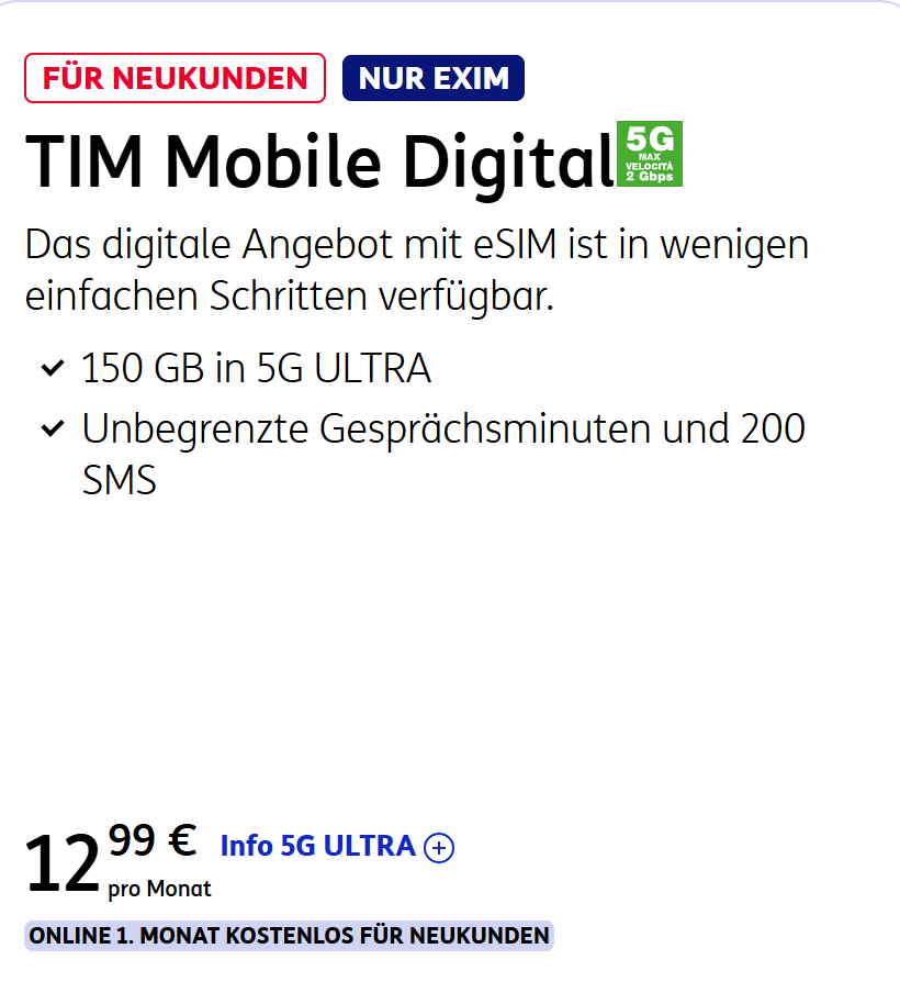 Natürlich haben wir auch dieses Jahr mal geschaut, was es Neues bei den Italienern von TIM gibt. Gefunden haben wir folgendes Angebot: